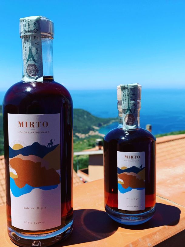Liquore artigianale ottenuto da bacche di mirto raccolte a mano sull'Isola del Giglio.